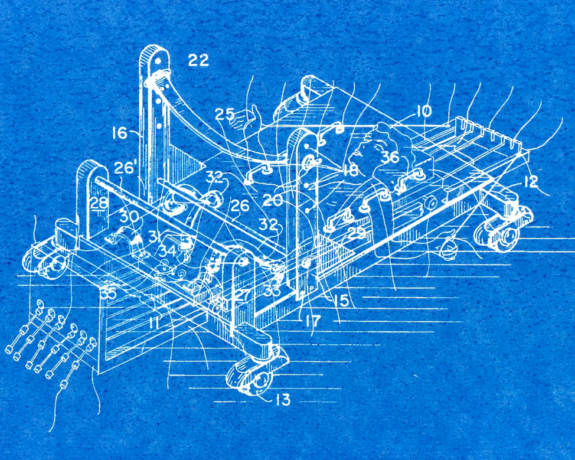 Recent drawings ground the exhibition, borrowing source material and inspiration from a century of patent applications for at-home exercise equipment, especially those depicting feminine figures interacting with these devices. The images act as time capsules, archiving beauty standards and gender norms of their eras through details such as fashion, hairstyles, and body types, and evoke associations with torture devices, BDSM, and cyborgs. Following patent conventions, dotted lines indicate possible movement, activation, or transformation, while solid lines in original patents distinguish machines. O’Brien blurs these boundaries, merging bodies and machines into swirling constellations of intersecting dashed lines to create cyborg diagrams.