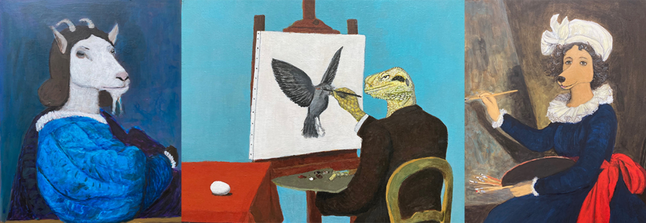 Artimal History, is a series of anthropomorphized versions of classic figurative art A.B.A Turner is creating for a children’s picture book project. The paintings are a way to explore and share art history, with a touch of humor.