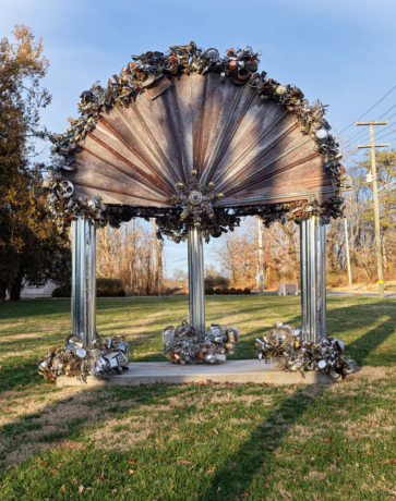 “The Lost State harnesses the history of the 'state that never was'. Between 1784 and 1788, the people of present-day Knoxville proposed statehood, and were eventually rejected by a newly established U.S. government. This project, a domed colonnade spliced in half, resembles a defunct federal monument forged from metal detritus. Discarded pots and pans, rusted barn roofing, outdated hardware, and other metal bits will slowly corrode over a two year span, highlighting the vulnerability of systems and institutions we believe indestructible. Given America’s current situation, The Lost State is a timely tribute to the liminal space between desire, failure, and our perplexed reality.” - Mandy Cano Villalobos, October 2025