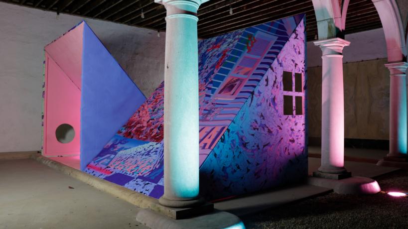 Wesley Roden is a mixed media artist currently working in Knoxville, Tennessee. His work prior to 2019 consisted of narrative driven paintings in acrylic and ink, referencing illustrators and graphic novelists for their saturated pallets. After studying under Chattanooga-based muralists, he then adapted this language to portray regional narratives. In 2023, Wes received a Bachelor of Fine Arts from the University of Tennessee, Knoxville, where he worked under local artists to paint in response to audience and place. Thus, community building became a driving motivator in his current works, dubbed “architectural paintings.” Inspired by religious architecture, these multi-media installations question the divide between actual and illusory space under the aim of fostering communal space. Moreover, Wes continues to balance oil painting, digital animation, and installation, questioning the role of viewership and blurring the line between lived and imagined experience.