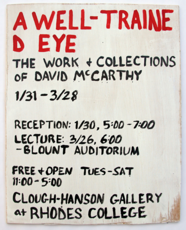 Drawn entirely from McCarthy's carefully curated personal collections, the exhibition is organized into four parts which examine the impact of the familial and the domestic on his development, his research into anti-war art, his work with student scholars, and the ways in which he developed ideas about the work of H. C. Westermann in conversation with Memphis artists.