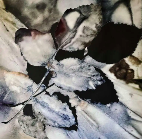 VanGieson manipulates the pristine eco prints by combining, tearing, curling, cutting, folding, collaging, and sewing them to create new sculptural artworks. Her works resonate with the influences of artists including the poet Mary Oliver (1935 – 2019) who declared “The leaf has a song in it” and the famous dictum written in 1964 by artist Jasper Johns (born 1930): “Take an object / Do something to it / Do something else to it. [Repeat.]” VanGieson’s art follows a similarly transformational path—from plant, to pot, to printed paper, to sculpture, to wall-hung installation—along the way preserving traces of the short-lived and fleeting nature of living things.