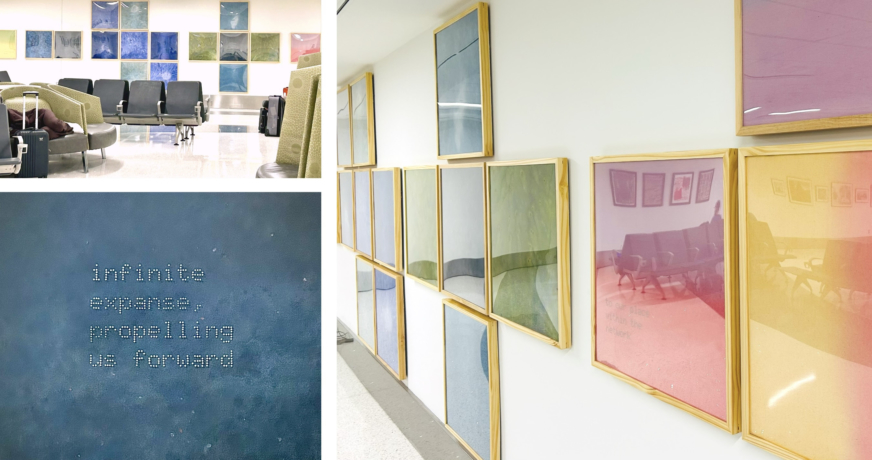 Image: Detail from, A dream of being, installation views of the exhibition, AI love songs for chatbots, at the Nashville International Airport (BNA), located in Terminal 1, Level 1, within the International Arrivals waiting area.
