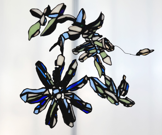 Driftless hosts a range of mixed media sculptures and 2D media that reflect the artist’s ongoing research in the realms of speculative environments and interspecies relationships. The exhibition responds to increasingly harsh environments, and a need for places of sanctuary and transformation. The works are primarily built upon the physical explorations in merging naturally derived dyes and pigments, wool processing, stained glass, fibers, and ceramic, with underpinnings in queer ecological studies and crip theory.