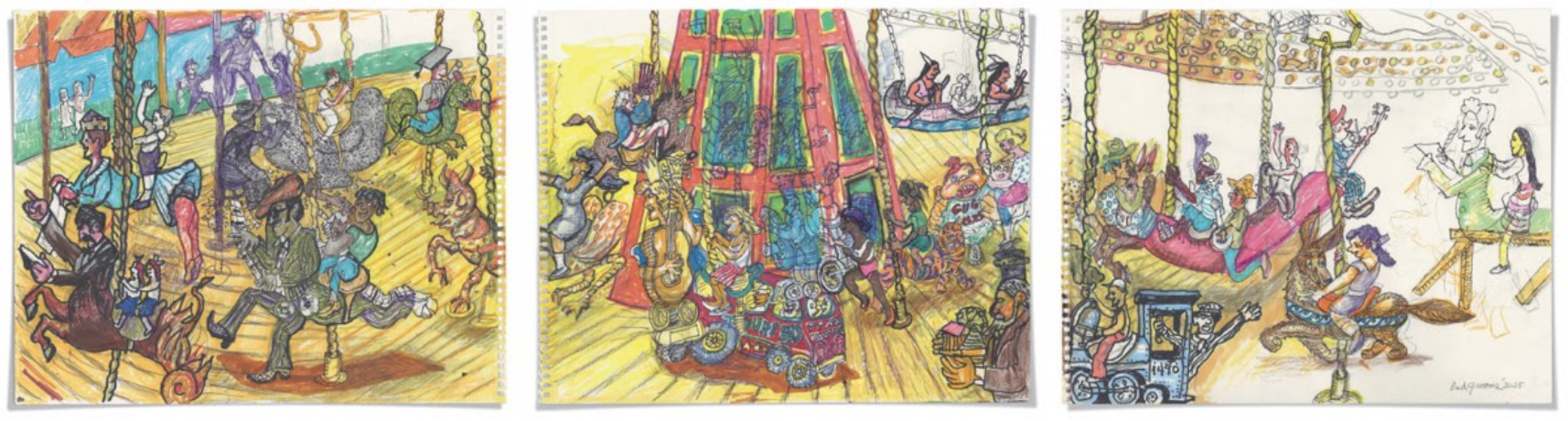 David Lusk Gallery presents Tennessee Fox Trot Carousel: the first drawings, original carvings, & new wall paintings by Red Grooms.