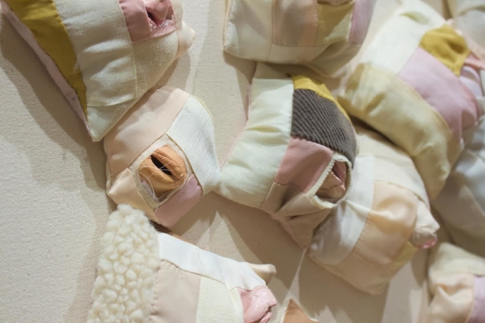 COOP is pleased to present More Plural Worlds by Sophia Mason. More Plural Worlds takes the form of a quirky natural history exhibit about The Great Salt Lake and its ecosystem. The Great Salt Lake is known for its extreme saline environment and visible geology. Through soft sculptures, sculptures, text, drawings, and prints, the show serves as a metaphor for American feminism. Feminism’s values and gains build on the past like layers of sediment. Those layers preserve radical shifts and fossils of influential outliers to the movement. The exhibit also admits to how our views of this past are being revised, the same way scientific perspectives change with new research. Fabric and sewing are the primary link between metaphor and meaning as the material relates to traditional American “women’s work” and also feminist artists who used soft sculpture to raise consciousness about their social positions.