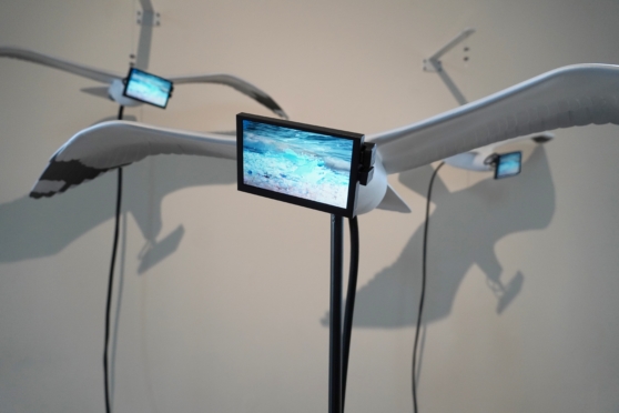 Working with new media does allow me to have flexibility in the way that context is generated. And that can be a challenge as the work doesn’t always come with the standard rules of engagement for the audience. The context then is built through other means, generally in my work through the employment of collage strategies. Images and material that carry that context as well as content into the work, such as the YouTube waterfalls, other mass-market landscapes, and characters like the seagull.